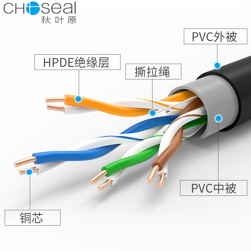 秋叶原 超五类双屏蔽网线8芯高速纯铜家用装修工程监控双绞网络线